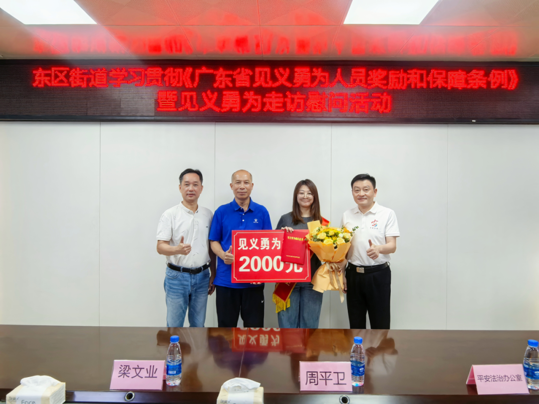 为大力弘扬见义勇为精神,广泛传播社会正能量。8月20日,东区街道开展学习贯彻《广东省见义勇为人员奖励和保障条例》暨见义勇为走访慰问活动。中山市见义勇为基金会副理事长梁文业、东区街道党工委副书记周平卫亿融策略,以及市见义勇为基金会、市委政法委、东区街道平安法治办公室、东区公安分局等相关负责同志陪同走访。