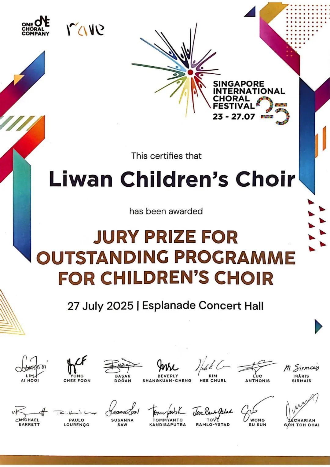获“杰出儿童合唱团评审大奖”