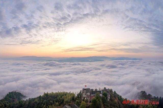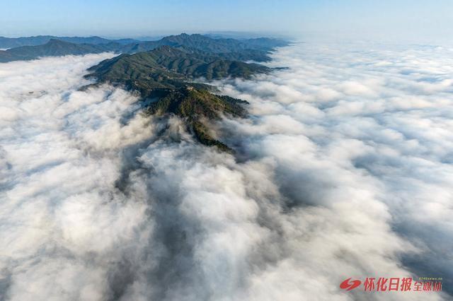 12月14日,航拍下的密岩尖云海格外壮丽。据了解,洪江区密岩尖是一处自然观景胜地盛康优配,仅需十几分钟的登山时间就可以俯瞰滔滔沅江及群山环绕的洪江古商城全貌。(李钢 摄)