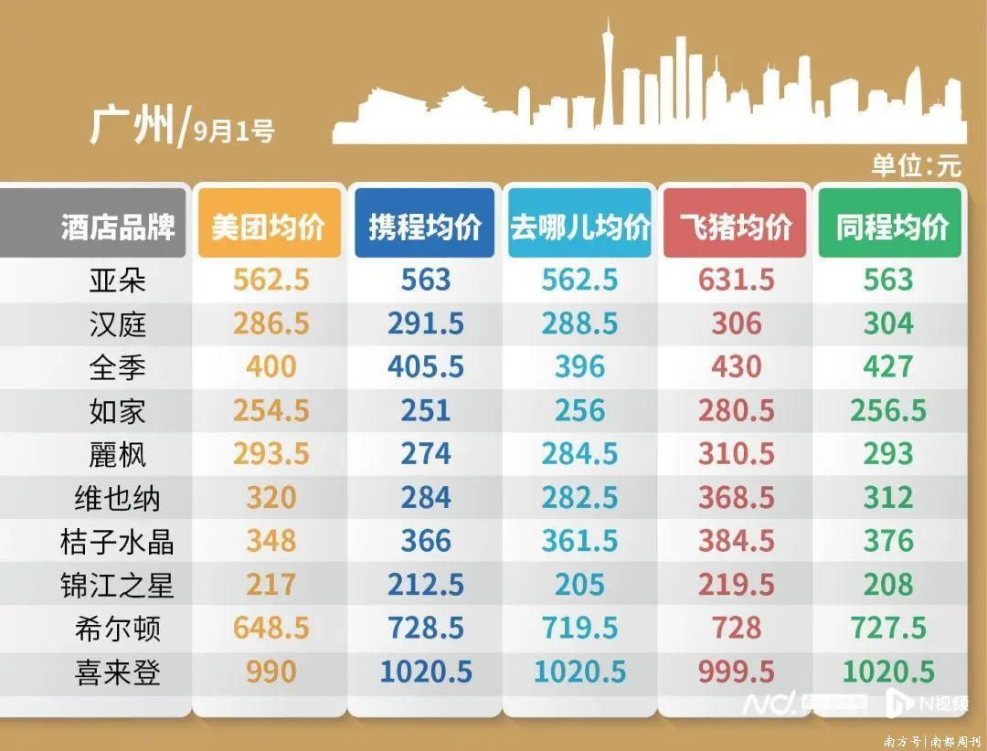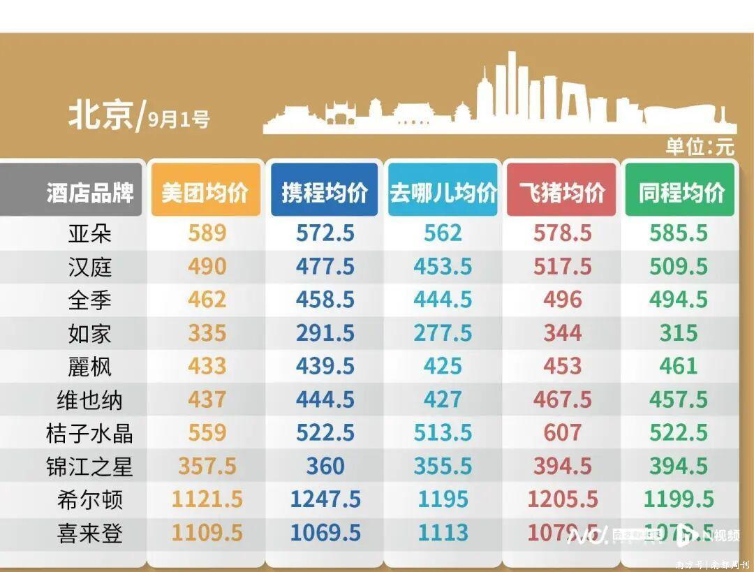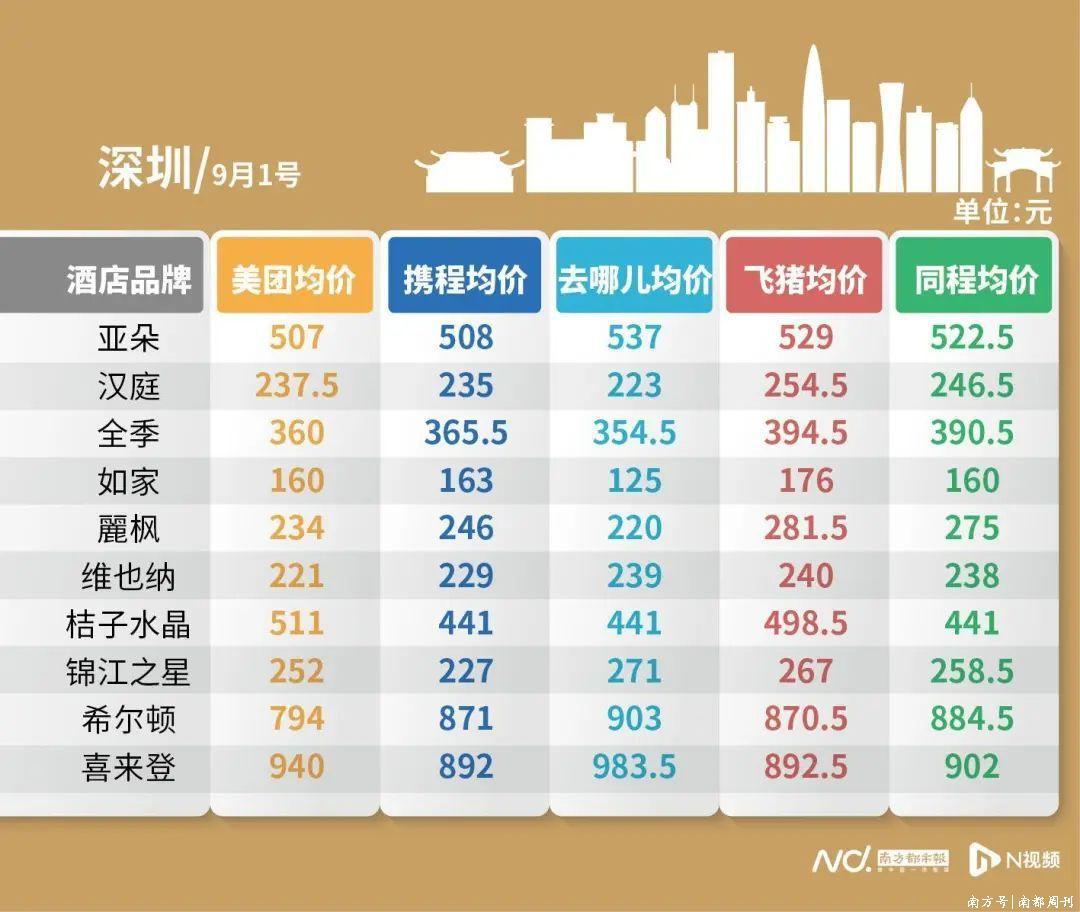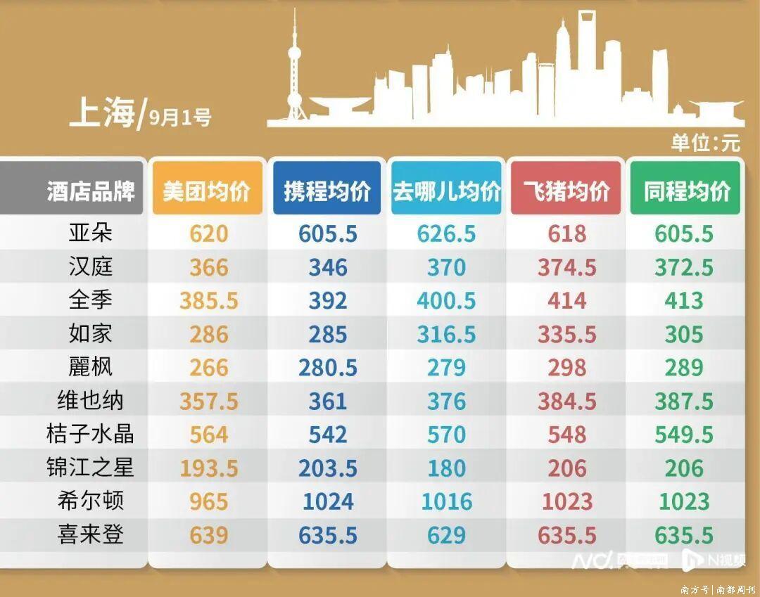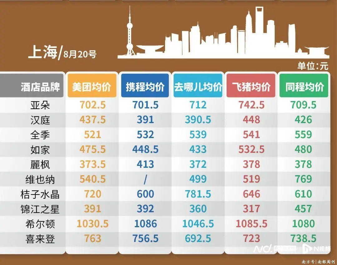 亚朵酒店价格跌回五年前?酒店平均客房收益还在持续下行?暑期旅游旺季即将落幕,商务酒店预订是否更具性价比?各大OTA的酒店价格差异是否扩大?针对这些疑问,近日,南都鉴定评测实验室“酒店价格指数”课题组,以北上广深四大一线城市为观察样本,持续追踪五大OTA平台(携程、美团、去哪儿、同程旅行、飞猪)的十大商务酒店价格数据,为消费者及业界提供决策参考。