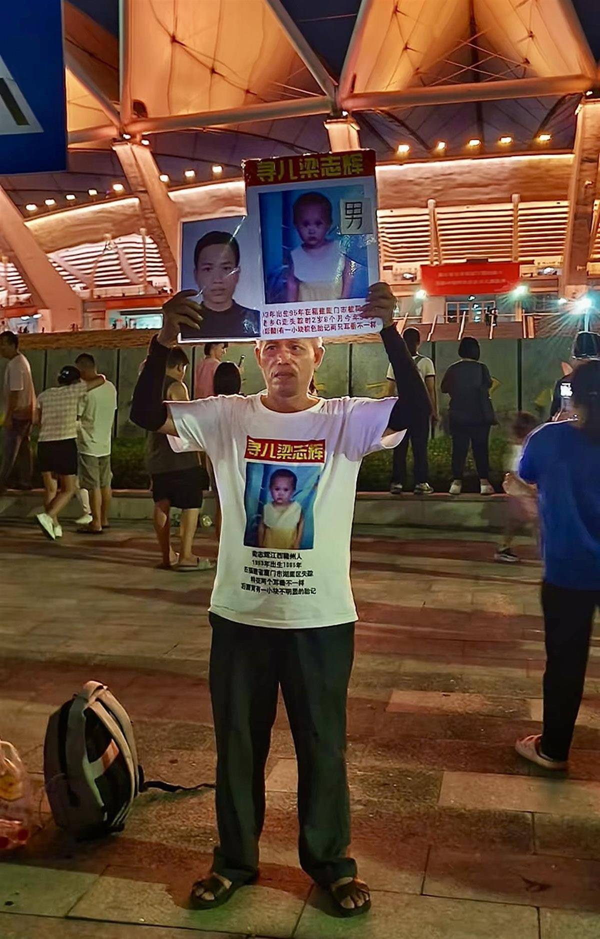 为了找到儿子,梁三寿和妻子从来没有放弃。三十年来,这位父亲的足迹遍布全国。和许多寻亲家长一样,他将儿子的照片印在衣物和寻亲牌上,让梁志辉稚嫩的面孔成为自己行走的旗帜。2020年8月后,他将希望寄托于网络,并多次进行DNA比对,却一次次在希望燃起后,迎来失望的结局。